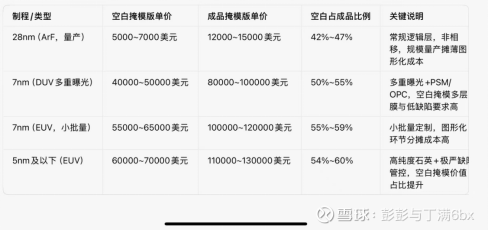 产业链流程:高纯石英基板→空白掩模(SKE环节)→掩模版加工(光罩厂,如 DNP、中芯、清溢)→晶圆制造(光刻环节)。核心卡位环节!