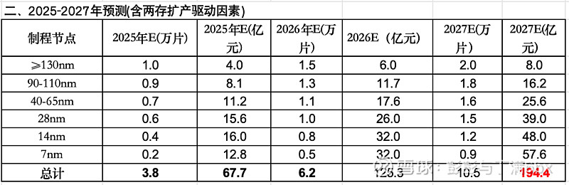 (2)结合行业调研数据,详细拆分了各制程的用量数据