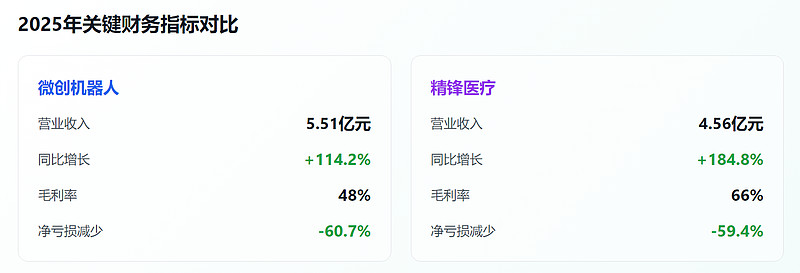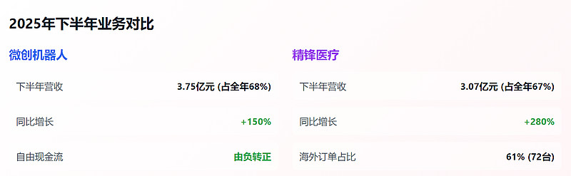 两家公司均在 2025 年下半年实现了关键财务指标的突破,且突破的逻辑各有侧重 —— 微创机器人验证了全球化布局的抗风险能力,精锋医疗则验证了高毛利产品的规模效应。