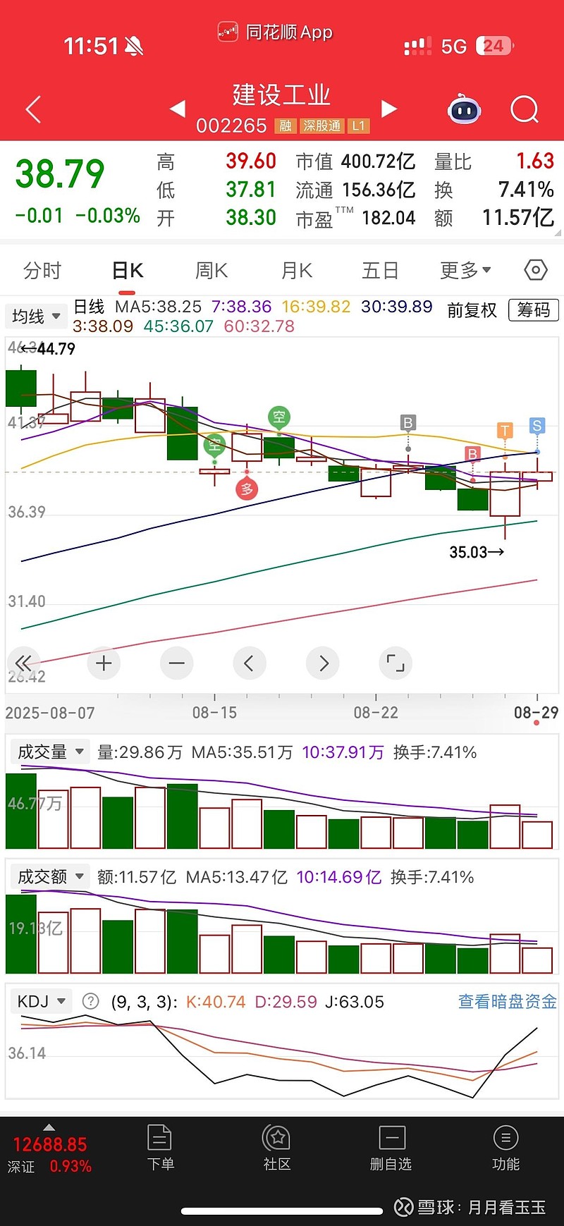 事情也清楚了。建设工业我底部猛加了一笔,然后在多头最弱的时候,我变成了那个抄底的多头,等待着便宜的筹码被其他资金也看上。这就是左侧的关键……