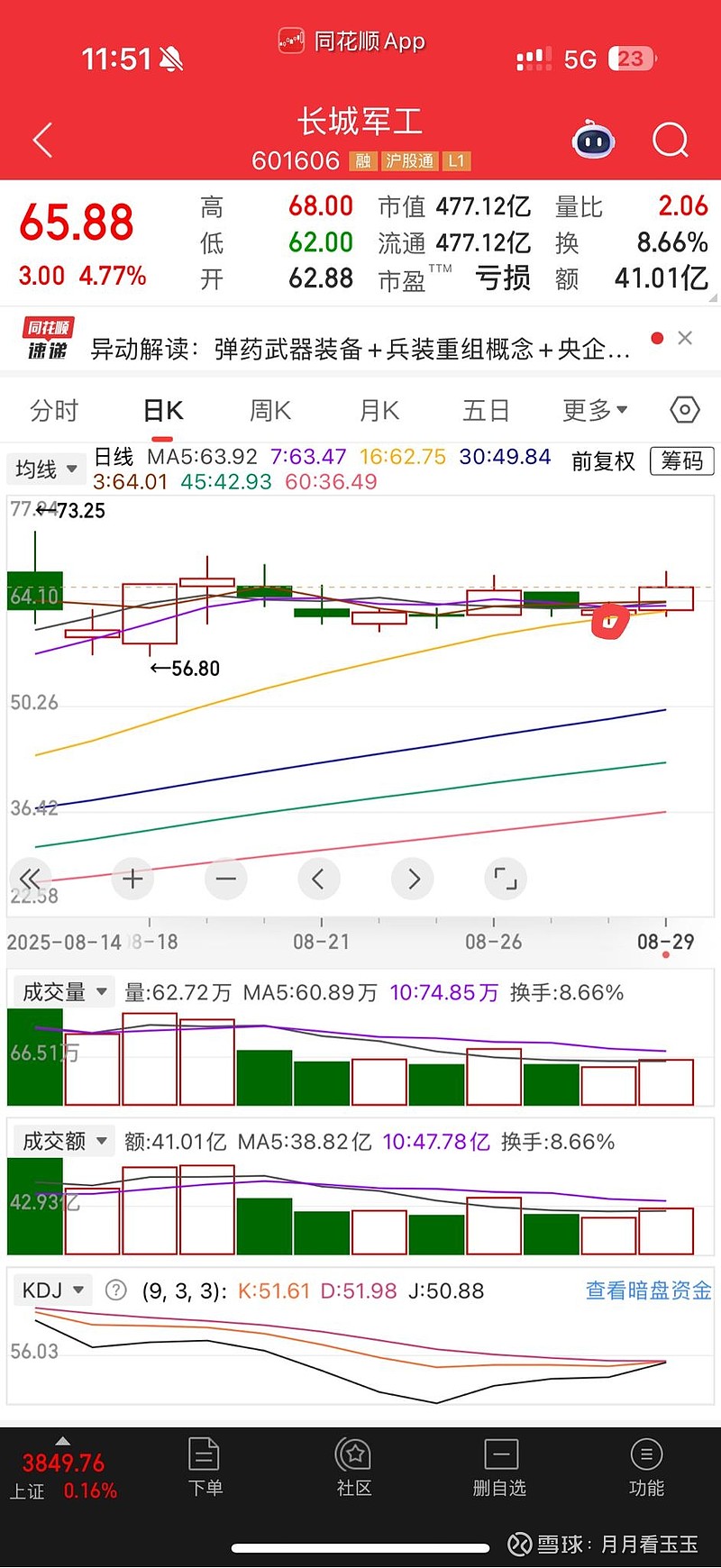 但是我发现有一个问题,当时北方长龙和长城军工都还没到位,或者说,还没踩到均线。还没有调整到位……我就知道,可能这个时候,手上的个股都还没到止跌的时候。便开始了无限的等待,等待板块的明星调整到位……