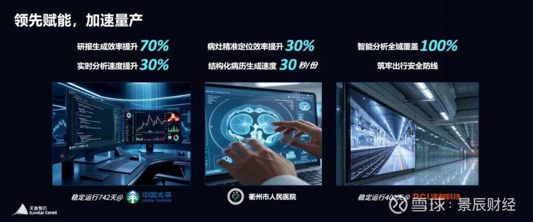 以上分享的成果,只是天数产品截至2025年落地应用中的沧海一粟。在更广阔的千行百业里,我们的算力正持续创造真实价值:金融领域,行业研报生成效率直接提升70%,量化分析响应速度提速30%,为决策抢占毫秒级先机;医疗场景,病患结构化病例生成压缩至30秒/份,肠胃镜病灶精准定位能力提升30%,用技术为诊疗效率与精准度双重赋能;交通领域,地铁站智能分析场景从电梯、车门等核心节点,快速拓展至站厅、通道、换乘区的全域覆盖,筑牢出行安全防线。