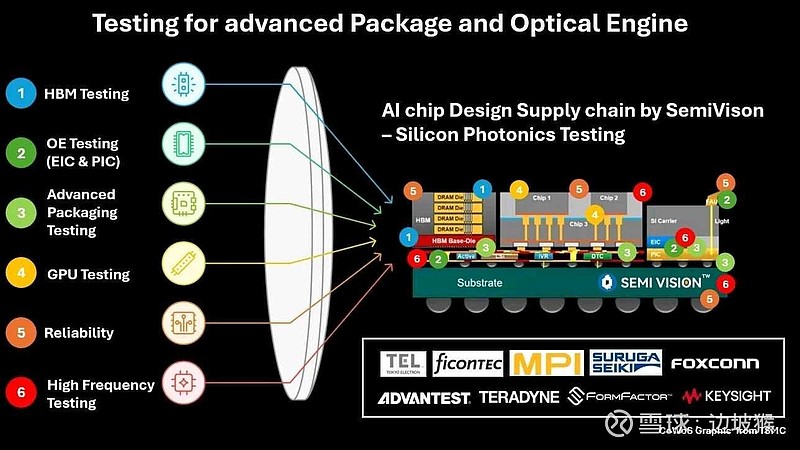 #CPO# $泰瑞达(TER)$ $罗博特科(SZ300757)$ 泰瑞达占据全球约30%的ATE市场,是半导体测试解决方案领域的主要竞争对手。其核心产品线包括#UltraFLEX和J750 SoC测试系统以及内存测试平台,此外,该公司还在工业机器人领域占有一席之地。 Teradyne通过收购LitePoint(无线和射频测试解决方案)和 Eagle Test Systems(高速和模拟测试技术)等公司,扩展了其在射频和系统级测试方面的能力。该公司首席执行官强调,预计人工智能芯片将在下半年推动收入增长,凸显了AI繁荣对半导体测试需求的重大影响。