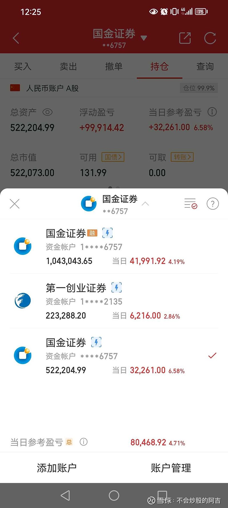今早盈利4.2%,当前满仓,没有操作