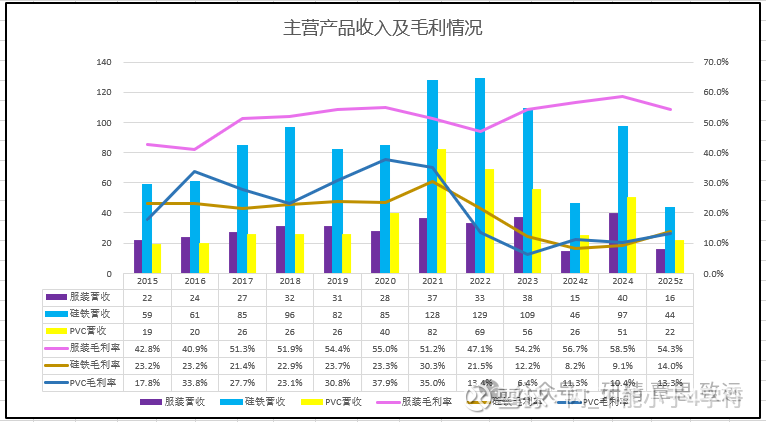 1、鄂尔多斯产品线很繁杂,虽然大体可分为电冶和服装两个板块,但电冶产品非常多,也都有些体量,为了集中精力,我们只看3个最大的产品线,按体量就是硅铁、PVC和服装。