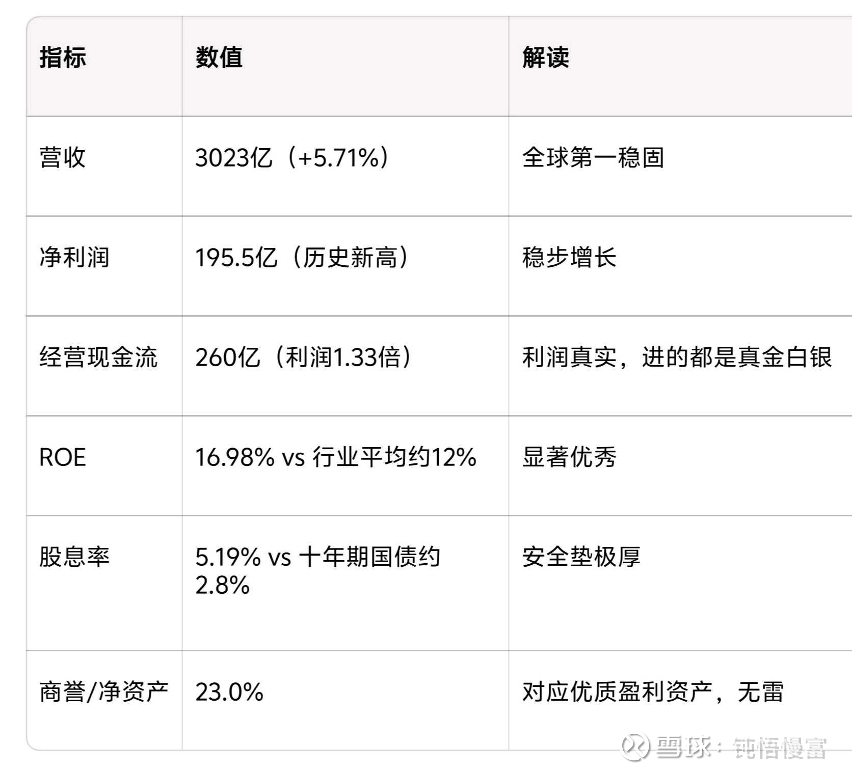 3023亿营收、195.5亿净利润、260亿经营现金流、股息率5.19%%、PE仅10.34倍。