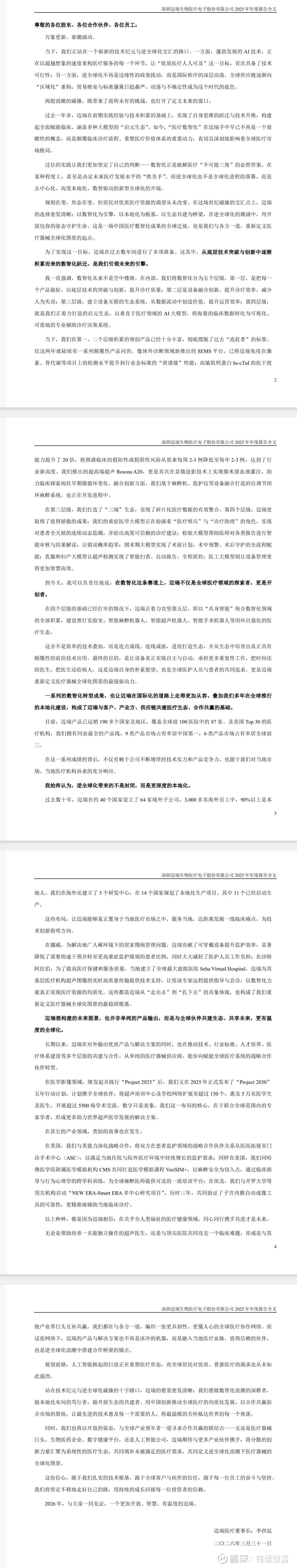 迈瑞2025年报,国内阵痛、海外当家、AI落地、新兴爆发。