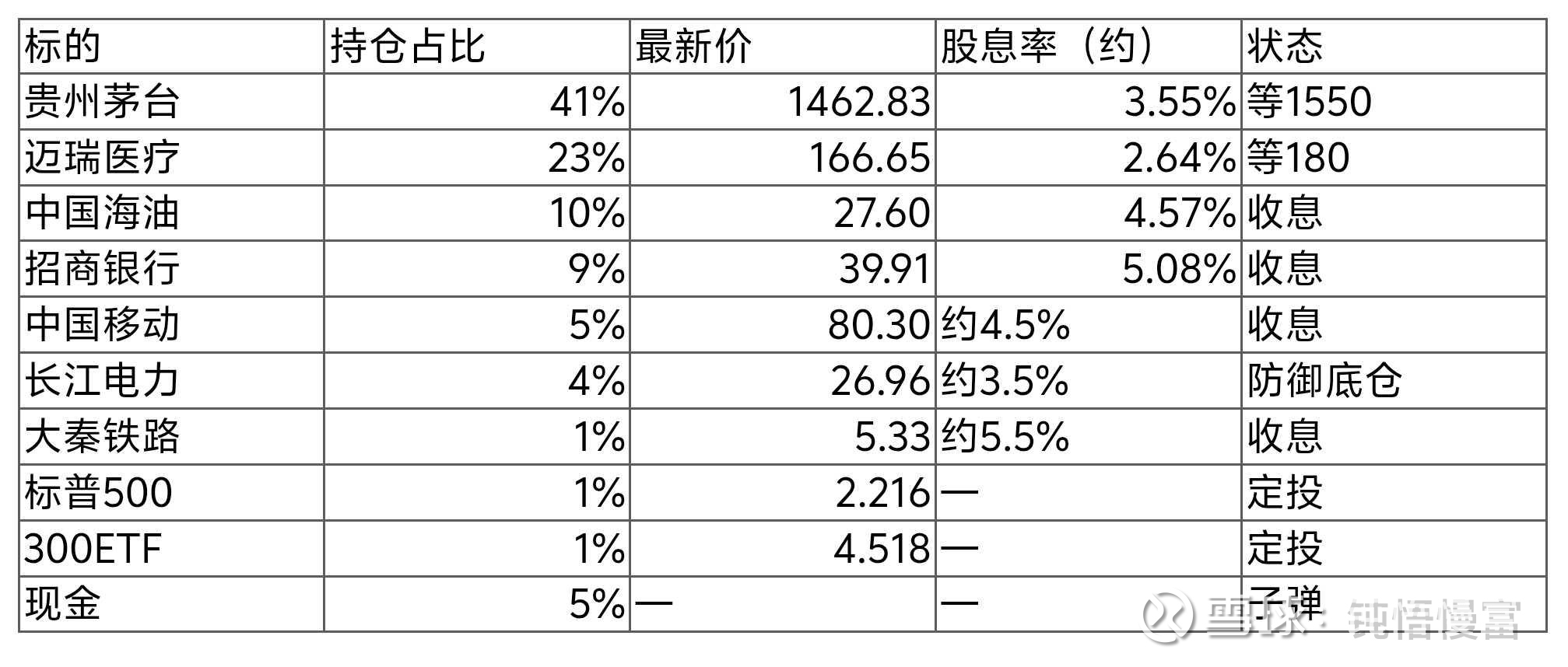 收息组合(招行+海油H+移动H+长电+大秦):约29%,股息率约5%。