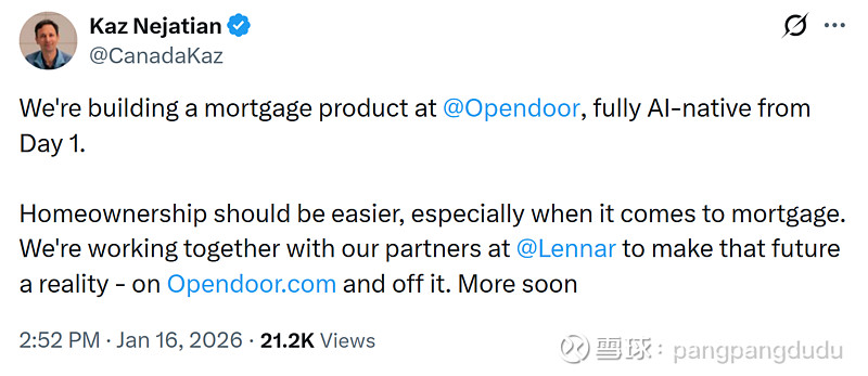 $Opendoor(OPEN)$ CEO发文:我们正在 @Opendoor 打造一款从第一天起就完全原生于 AI 的按揭房贷产品。