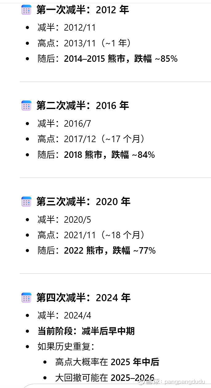 这次是2024年4月减半,2025年10月初到最高点12.6万,正好18个月。从高点开始跌,这才过了4个月,还早。估计今年夏天会更低,现在应该不需要抄底。