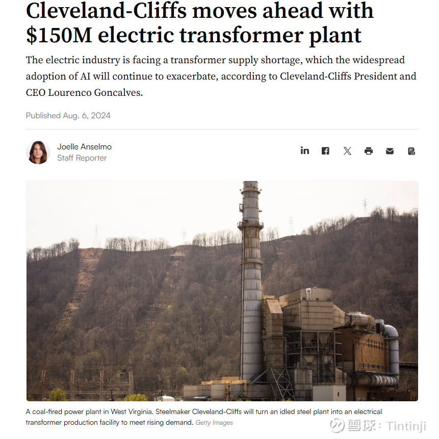 在10月初OpenAI的投资热潮中,我研究了变压器和相关电工钢的工厂,发现美国本土只有CLF一家公司有制造能力,虽然成本上没什么竞争优势。但是考虑到贸易,以及国家安全,依然认为该公司可能会有Intel类似的国家安全投资或者背书。(其实这一点在财报的演示中确实有所体现)。