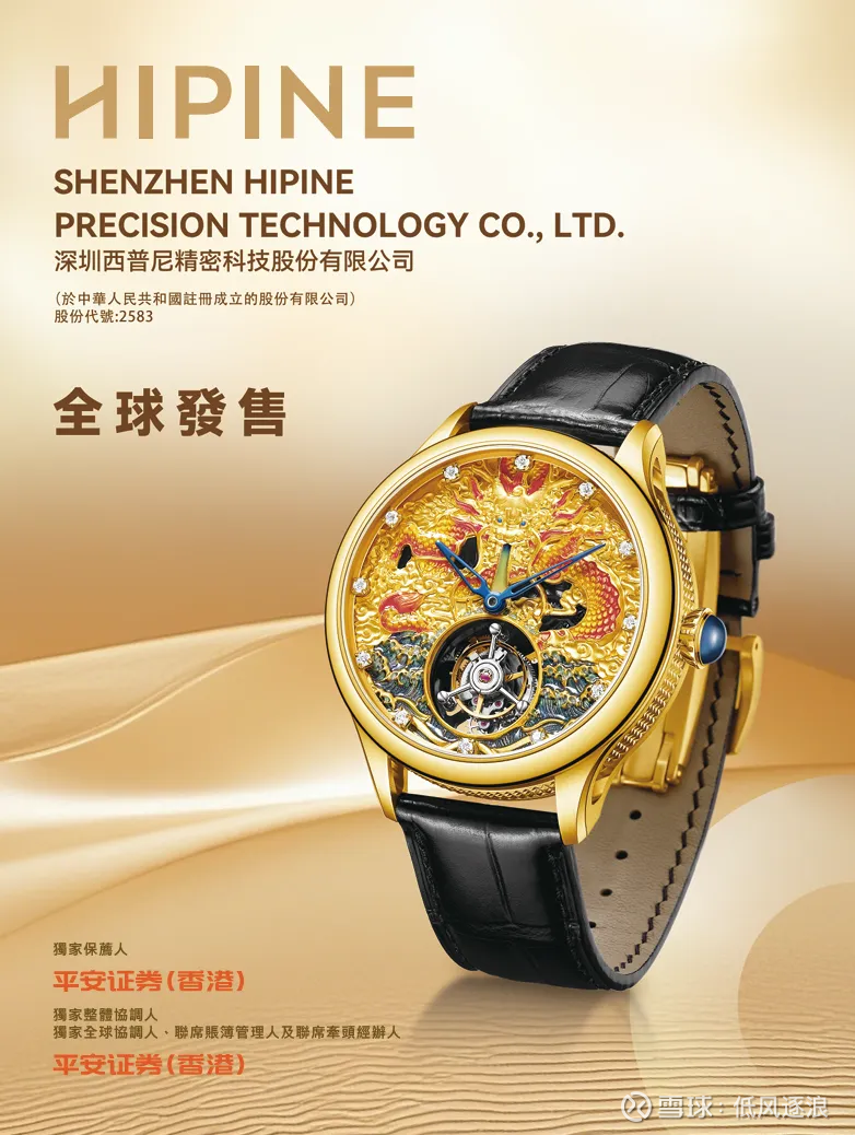 自有品牌(OBM)运营"HIPINE"和"金熊"两大品牌,产品SKU超10,000个。2024年OBM业务占营收70%-90%,通过全国3,000多个零售点销售。按足金手表GMV计算,2024年以35%市占率位居中国第一,2023年足金手表细分领域市占率达35.83%。ODM代工的客户包括老凤祥、周大生等知名品牌。2024年ODM收入激增176.7%至1.19亿元。