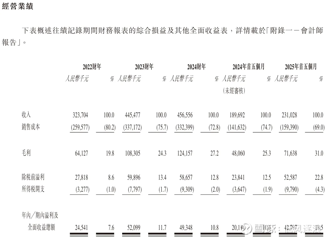 2022年2,454万元,2023年5,210万元,翻倍增长,但2024年回落至4,935万元。2025年前5个月净利率跃升至18.52%。利润波动主因传统金表销量下滑及黄金价格波动,而近期净利率提升体现出成本管控见效。