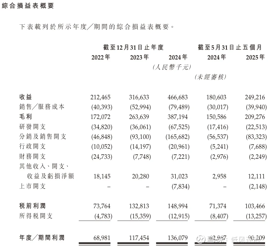 2022年毛利1.7亿元(毛利率80.1%),2023年2.6亿元(毛利率83.3%),2024年3.9亿元(毛利率83.0%),2025年前五个月毛利2.1亿元(毛利率84.0%)。