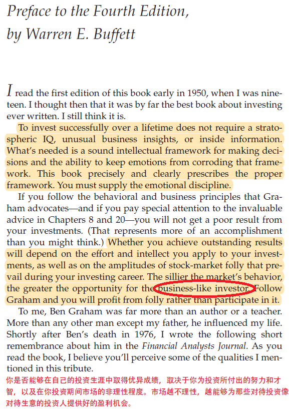 巴菲特在为《聪明的投资者》一书写的前言里,有这么一句话:“对于价值投资者,市场越愚蠢,机会越大。”(The sillier the market’s behavior, the greater the opportunity for the business-like investor.)这是我能找到的对生意、股票以及利润之间关系最好的论述——股票背后是生意解决了股票估值问题,并同时可以利用市场的非理性为自己的利润服务。