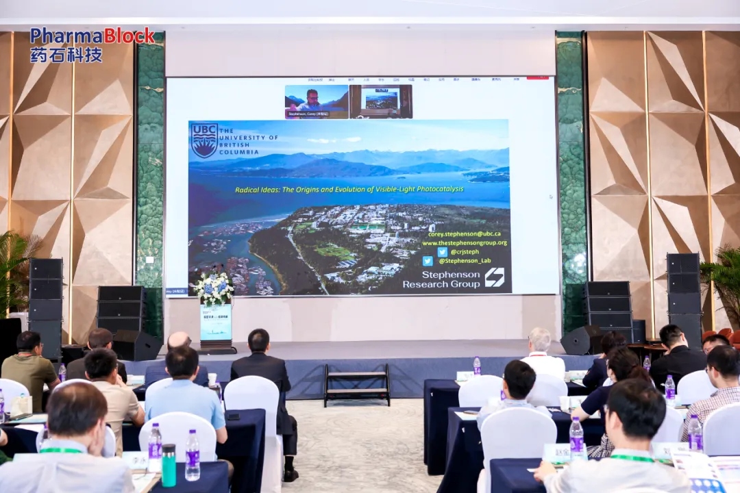 不列颠哥伦比亚大学Corey Stephenson教授分享团队的可见光光催化研究工作。2007年他与同事开展自由基开环反应合成项目,早期探索马来酸衍生物传统合成,后在液氮真空阱发现胺类兼具电子供体与氢供体双功能,进而开发活化与非活化烯烃催化氢化方法。团队不断推进光催化设备发展并强调高强度光源防护,针对光催化放大难题,指出传统光源光穿透不足致大型容器反应耗时,通过小管径连续流反应器解决,并与礼来公司合作建成反应器,实现公斤级自由基三氟甲基化,分离收率可达60-65%,破解有机合成放大难题。