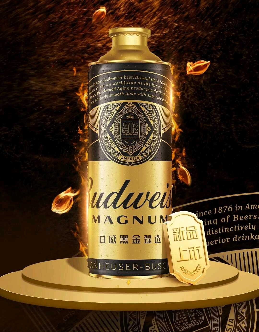 最终,黑金配色相得益彰,罐颈与罐身交相呼应,极大地凸显百威神秘而高端的品牌质感。