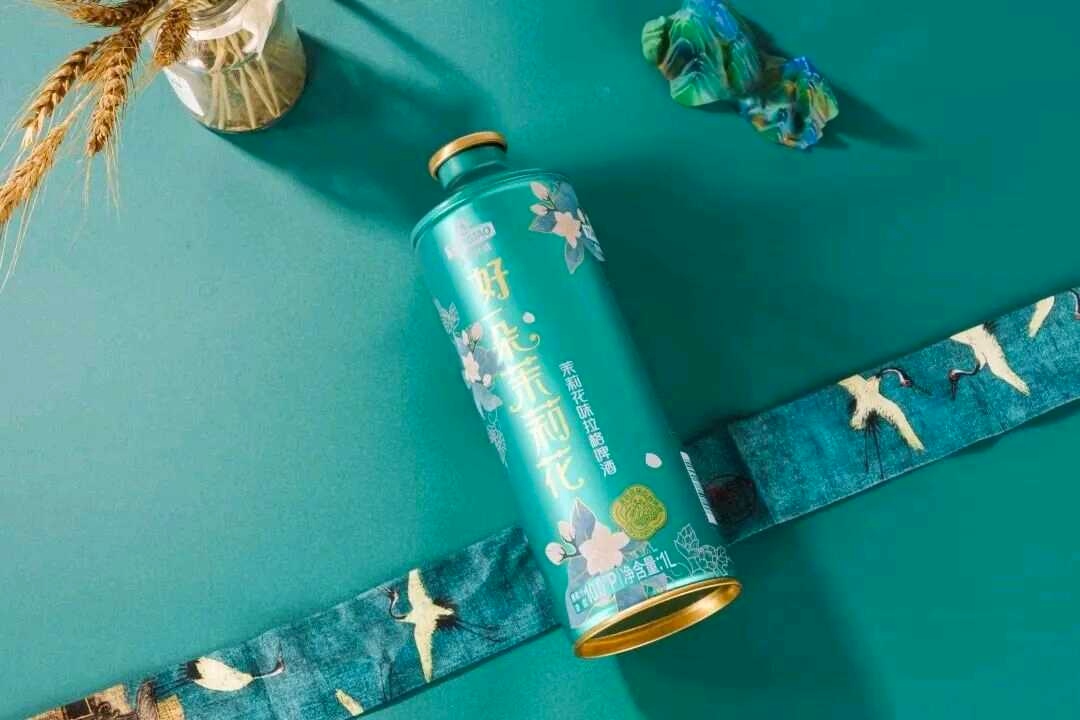 值得一提的是,青岛啤酒茉莉花风味款一升罐成为首例采用“版面先行、颈盖呼应”色彩定制模式的案例。在这款产品打样过程中,我们依据罐身主色调通过几次工艺尝试最终精准调配出与罐身一致的清新雅致的青绿色高颈盖,使罐颈颜色在整体设计语言中自然延伸,实现产品整体高度融合的视觉统一性,让那抹青绿雅致得很华丽!