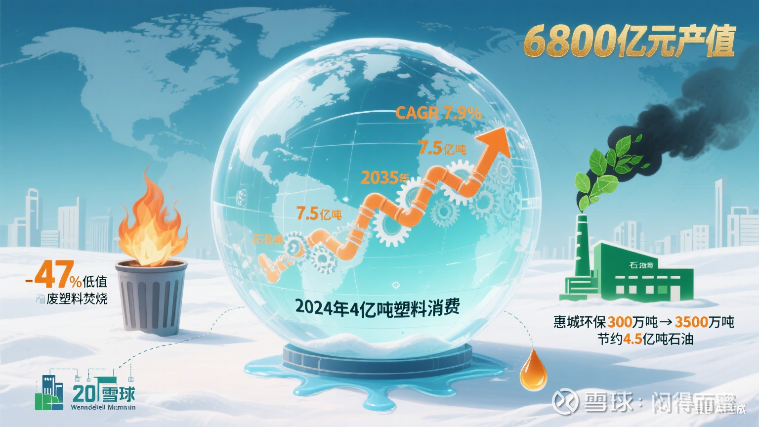 2、到2035年低值废塑料3.5亿吨。如果全球定义在2035年要解决全世界的塑料污染问题,十年内,惠城环保每年必须投产3500万吨。