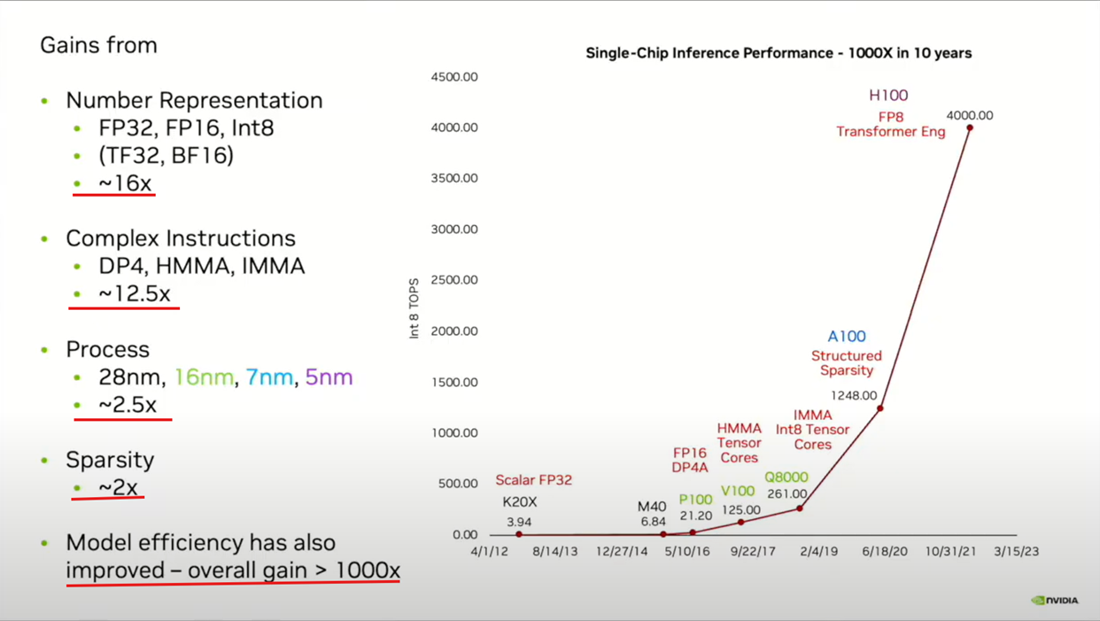 英伟达首席科学家在一次学术会议上,分享了一组数据,Nvidia的GPU算力,在过去十年,性能提升了1000倍。