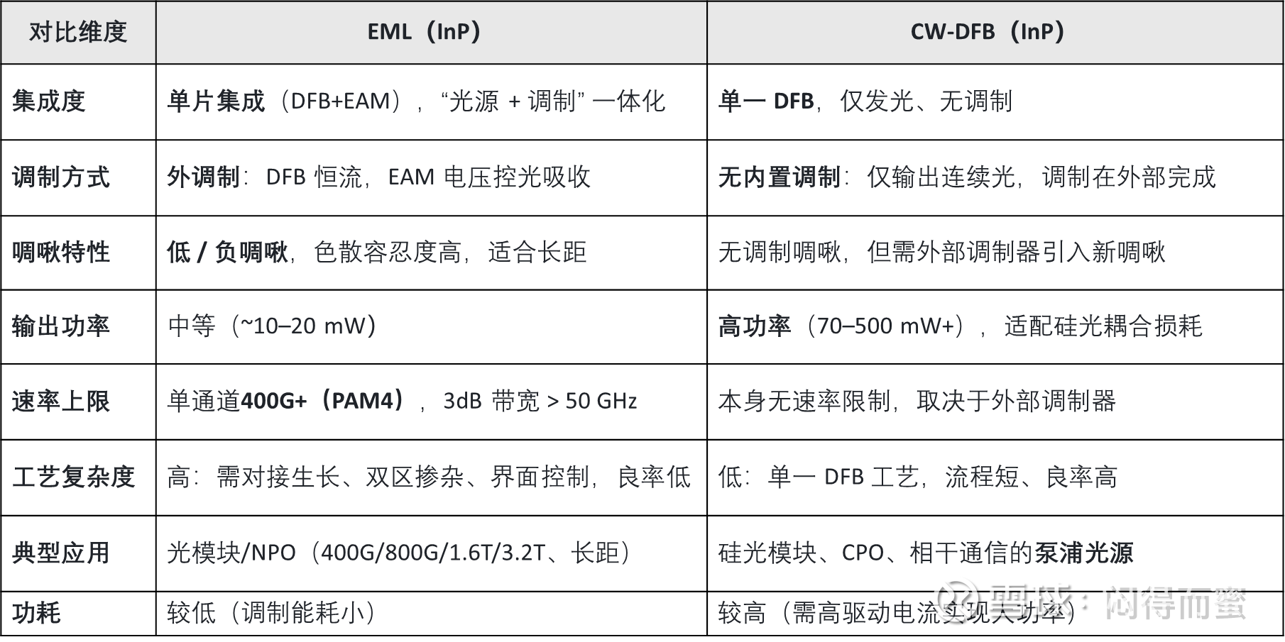EML和CW-DFB设计方案不同,但相同原材料、相同工艺、相同设备,甚至有些工厂相同生产线。