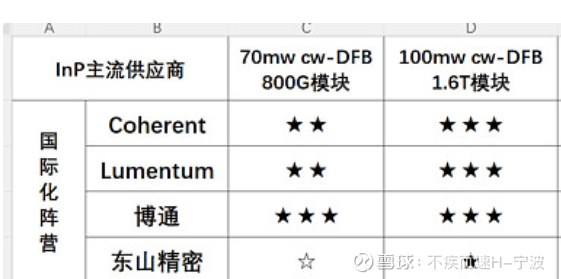 回复@不疾而速H-宁波: 我前面解释过,一颗EML的价格是 CW-DFB的3倍,如果是1.6T模块用的EML,是6倍,利润率更高。只有EML没搞定的公司,才会去做CW-DFB。如果你来给东山精密当家,你会把产能腾出来做CW-DFB吗?//@不疾而速H-宁波:回复@闷得而蜜:我看到你表格中CW-DFB东山的星星很少,是否意味着他这块的技术能力不够?查看图片