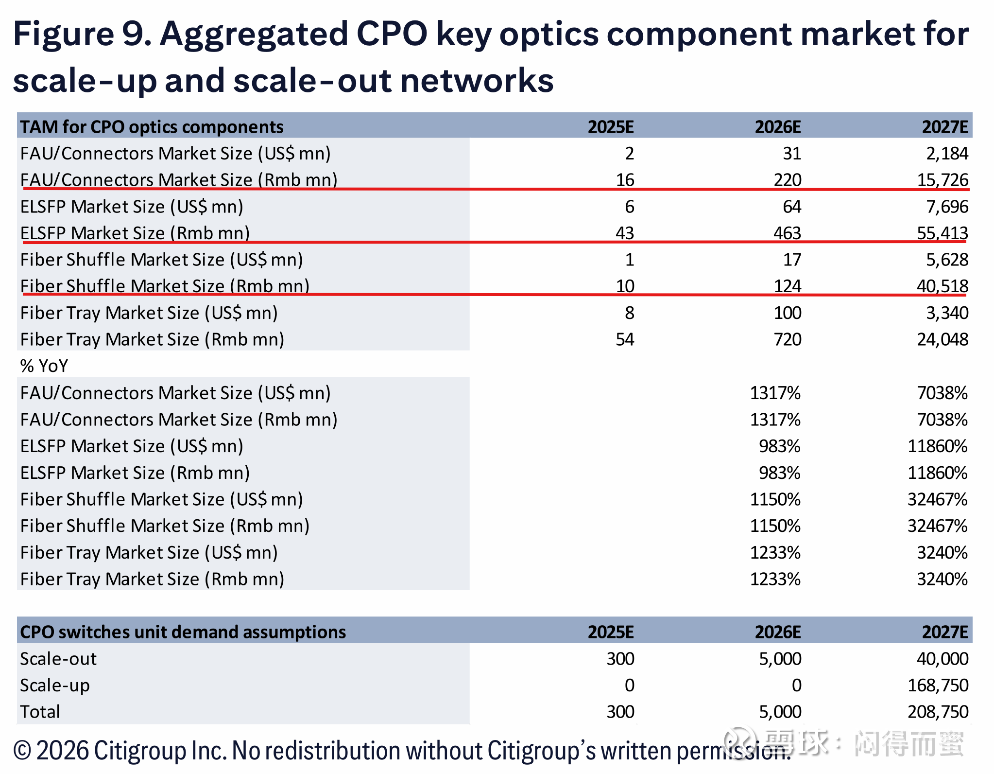 光互联大类相关的价值量测算(花旗,可惜没有光引擎,不过可参考Scale-out×9即可)