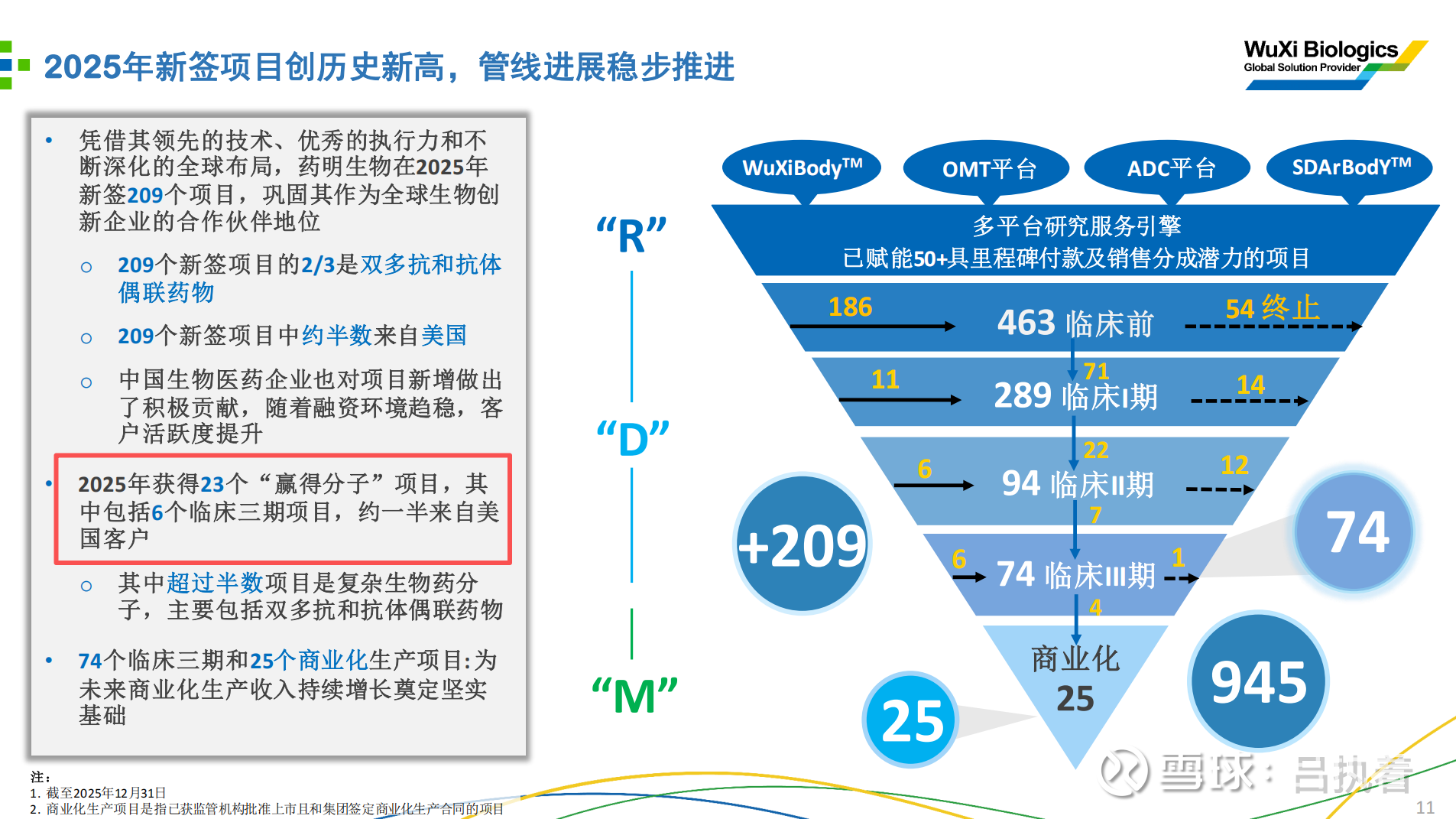 2025年通过“赢得分子”(Win-the-Molecule)策略签下了 23个 项目,其中竟然包括 6个临床III期 项目 。6个临床III期意味着直接从竞争对手手中抢到了即将上市的“熟透的果子”,这不仅体现了技术优势,更体现了客户在关键时刻对药明交付能力的信任。