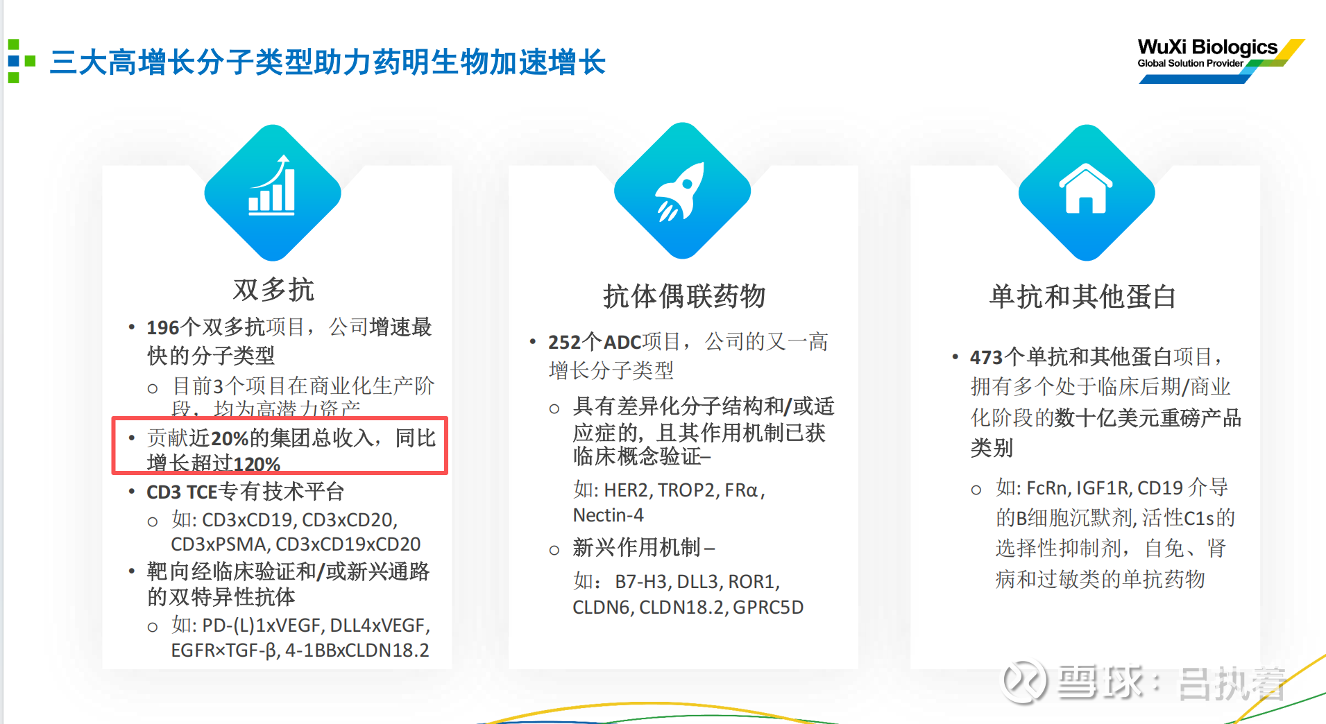 爆发式增长: 双多抗(Bispecifics/Multispecifics)业务收入同比增长超过 120% 。