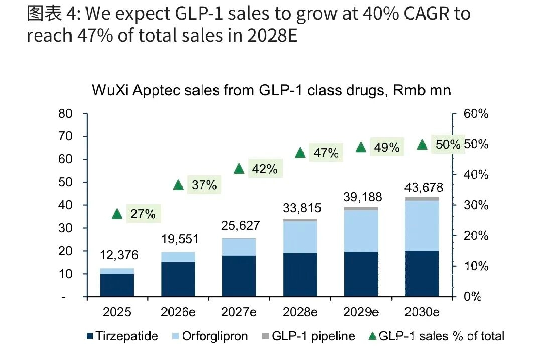 对中国CDMO影响:以药明康德为例,预计其GLP-1相关收入将以约39%的年复合增长率增长,到2028年贡献近半数营收。