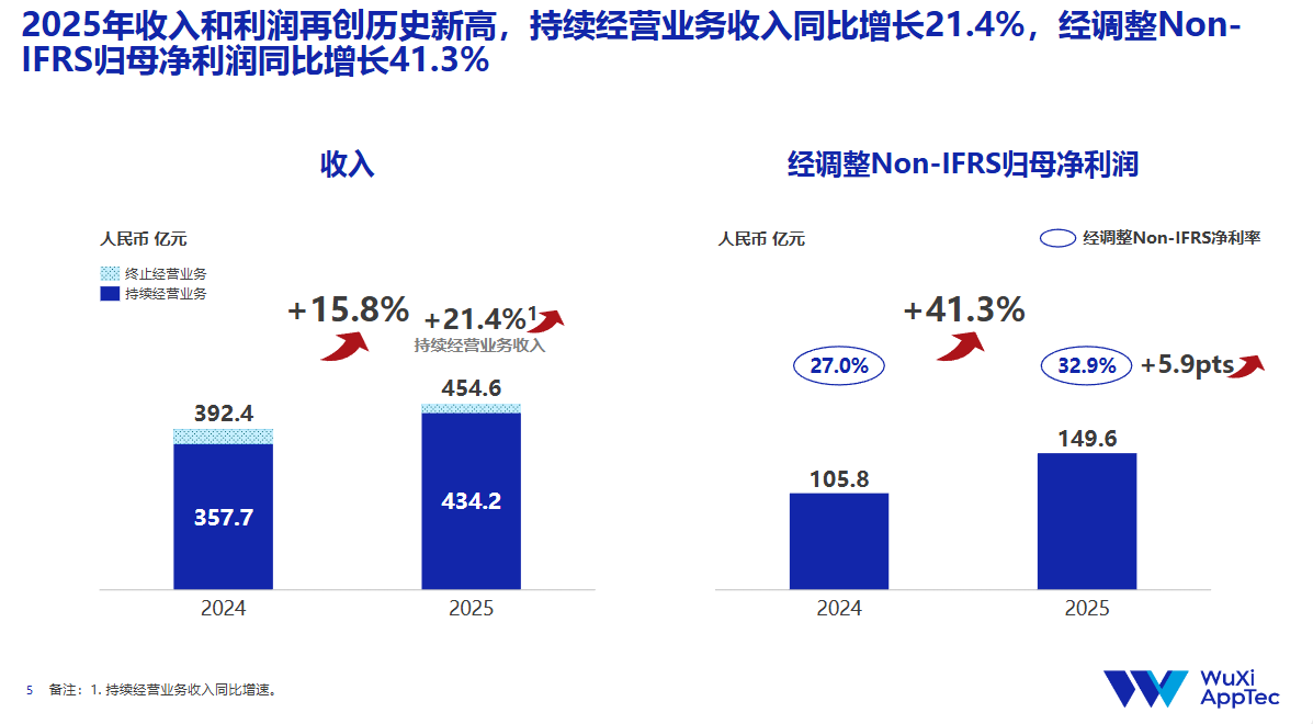 财务业绩突破:公司全年总收入达到人民币455.6亿元,同比增长15.8%。其中,核心的CRDMO业务(持续经营业务)收入为434.2亿元,同比大幅增长21.4%,这显示剥离非核心资产的影响已被完全消化,增长纯粹由核心引擎驱动。