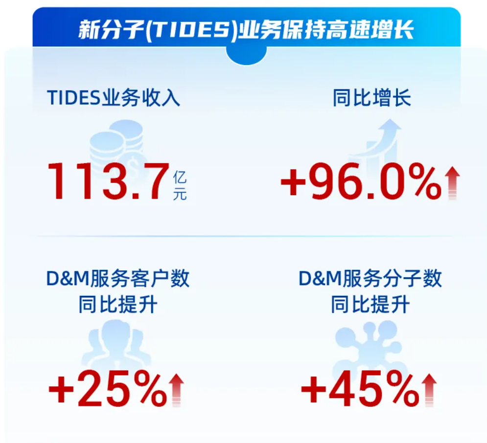 生物学业务:收入26.8亿元,同比增长5.2%。作为前端创新源头,为公司贡献超20%的新客户,且新分子业务同样占比超30%,在前沿靶点领域建立优势。