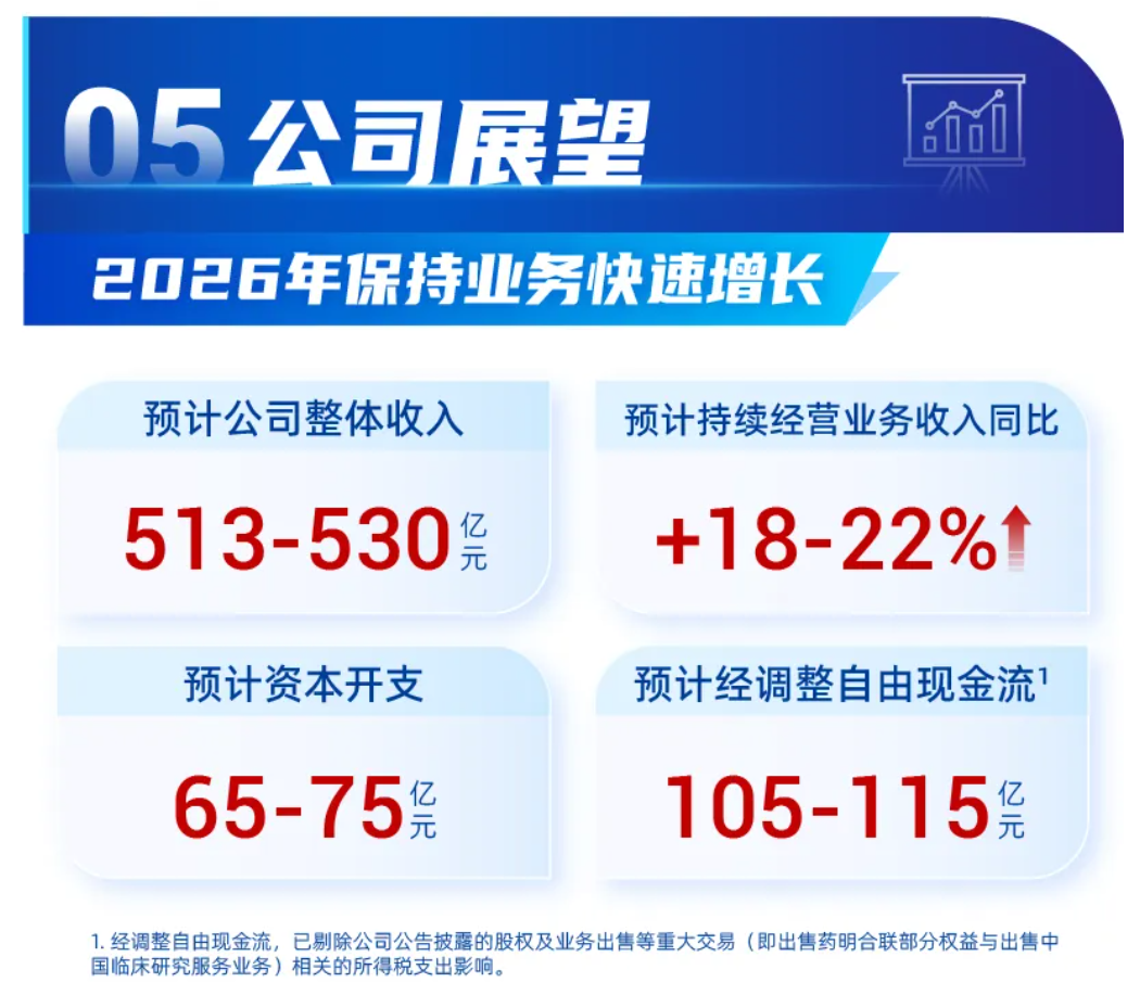 基于强劲的在手订单,公司给出了超出市场普遍预期的2026年指引。2026年业绩指引:预计全年收入人民币513至530亿元,其中持续经营业务收入增速指引为18%-22%。公司公众号文章亦强调了对CRDMO模式长期增长前景的信心。股东回报:董事会提议2025年度现金分红总额约57.1亿元,并已完成股份回购,年度回报总额近77亿元,积极与股东分享发展成果。