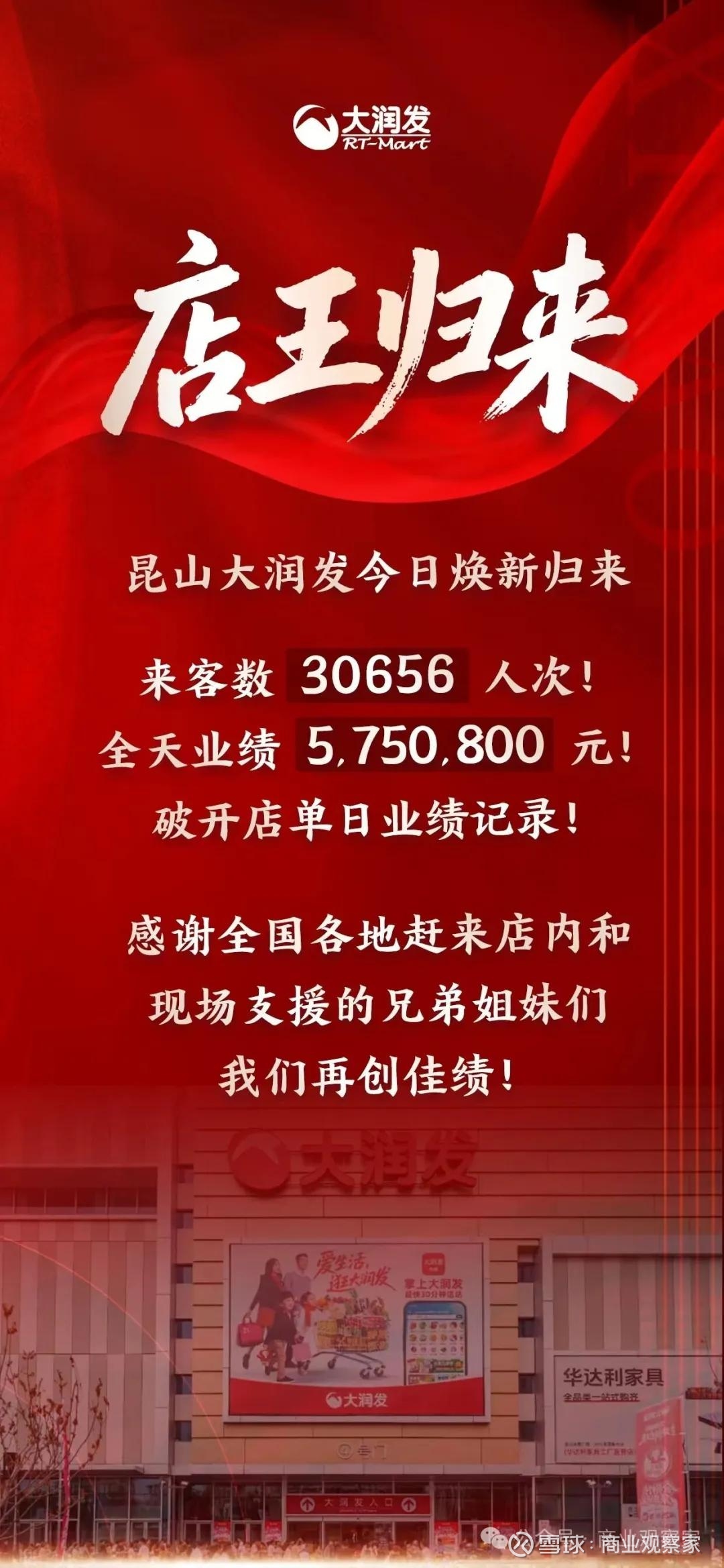 @今日话题 @价值投机张 $高鑫零售(06808)$ 根据大润发发布的数据显示,昨日换新开业的大润发店王店、曾经销售排名全国第一的门店——昆山店,破了大润发开店单日业绩纪录,开业日销售额为575万元(含税),来客数则有30656位。