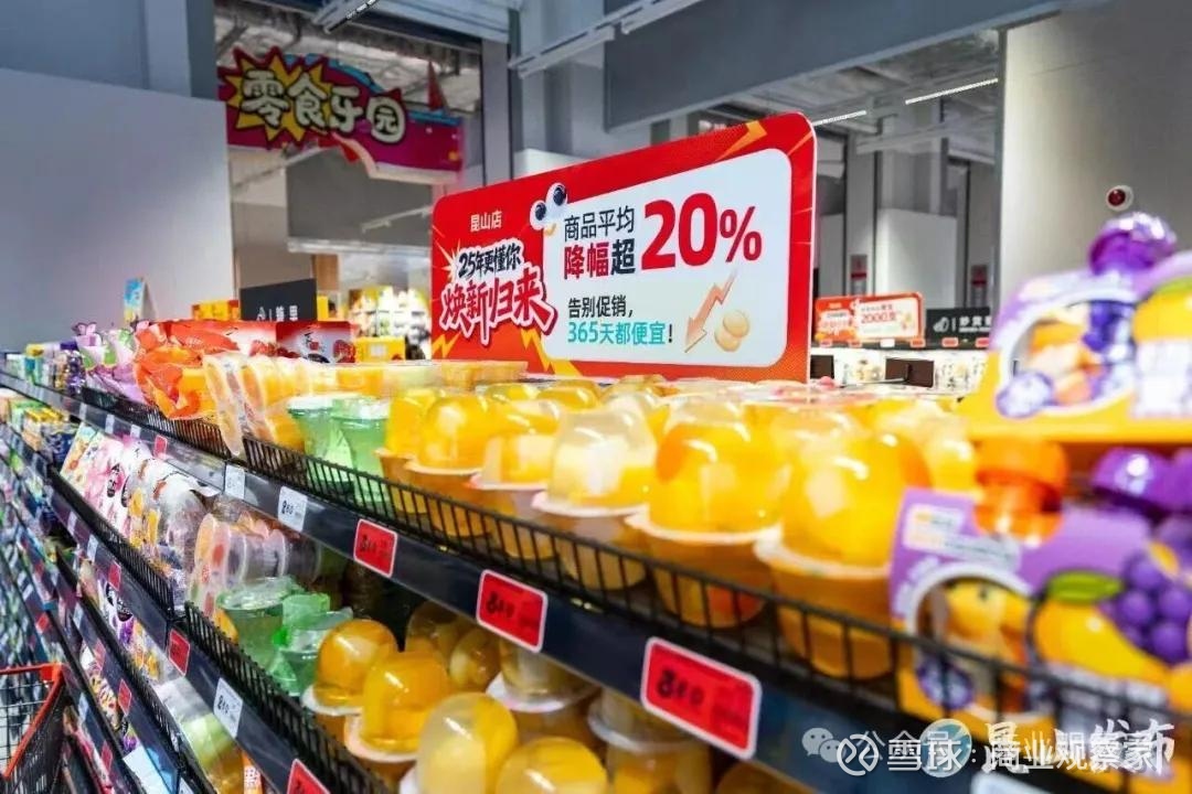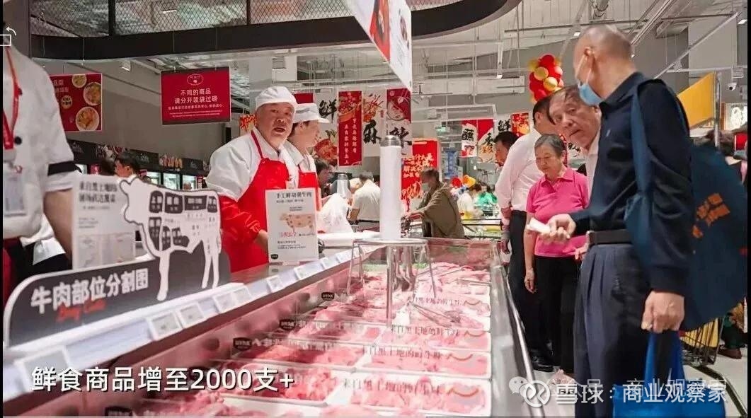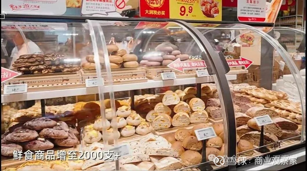 大润发昆山店于开业日呈现出的一些特色则在于:1、商品汰换了50%。2、商品平均售价降幅20%。3、商品精选化,SKU减少了一半左右,但鲜食SKU增加到2000支以上,熟食等即食品类大幅强化。4、场景化陈列与销售。5、增加及扩大堂食休闲互动区。