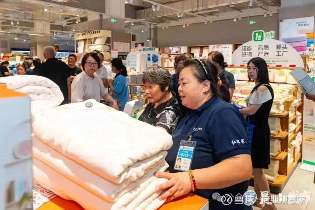 大润发昆山店超市卖场面积在8000平米左右,做的仍是大卖场的“一站式购齐”——生鲜、即食、快消、日用、家纺、电器全经营。