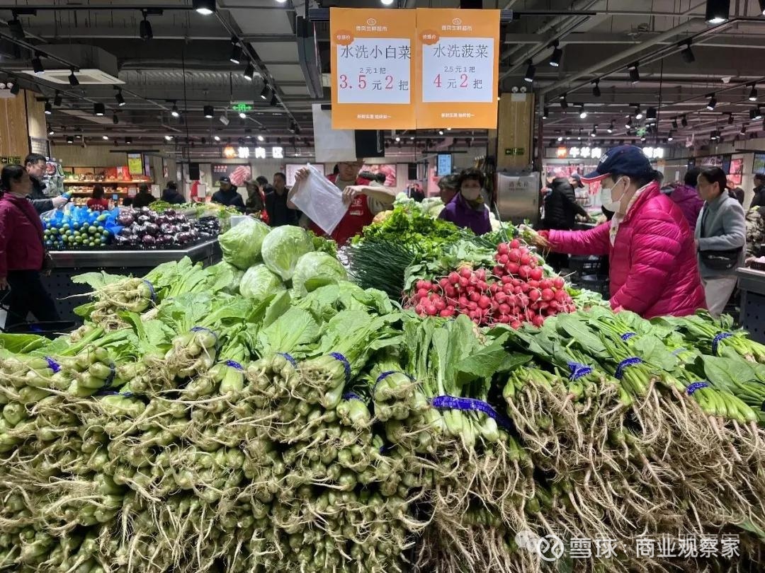 很多附近社区大爷大妈是在两家超市都购物,经常进行“比价”,哪家哪款菜今天做特价就在哪家买。