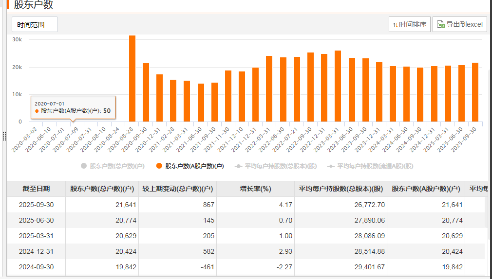 近一年前十股东由24年3季度的57.22%下降到52.33% 减少30610600股。同期股价20.96上涨到21.17 小幅增长。同期持股人数19842增长到21641增长1799户。假设全部由1799户接盘则人均持股17015股。