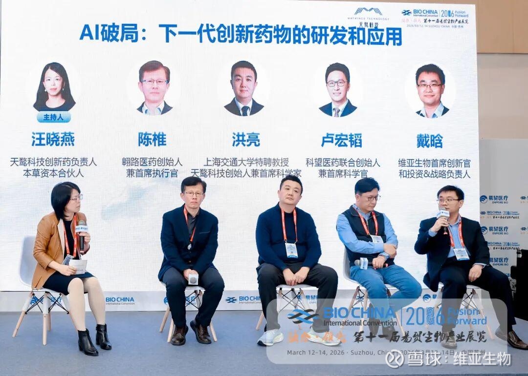 近日,BIO CHINA 2026在苏州国际博览中心举行,维亚生物出席本次大会并设立展台。维亚生物首席创新官兼维亚生物创新中心负责人戴晗博士受邀出席,分别作为圆桌嘉宾及主持人参与两大热门议题的深度对谈,展示了其在创新药研发领域的前瞻洞见。
