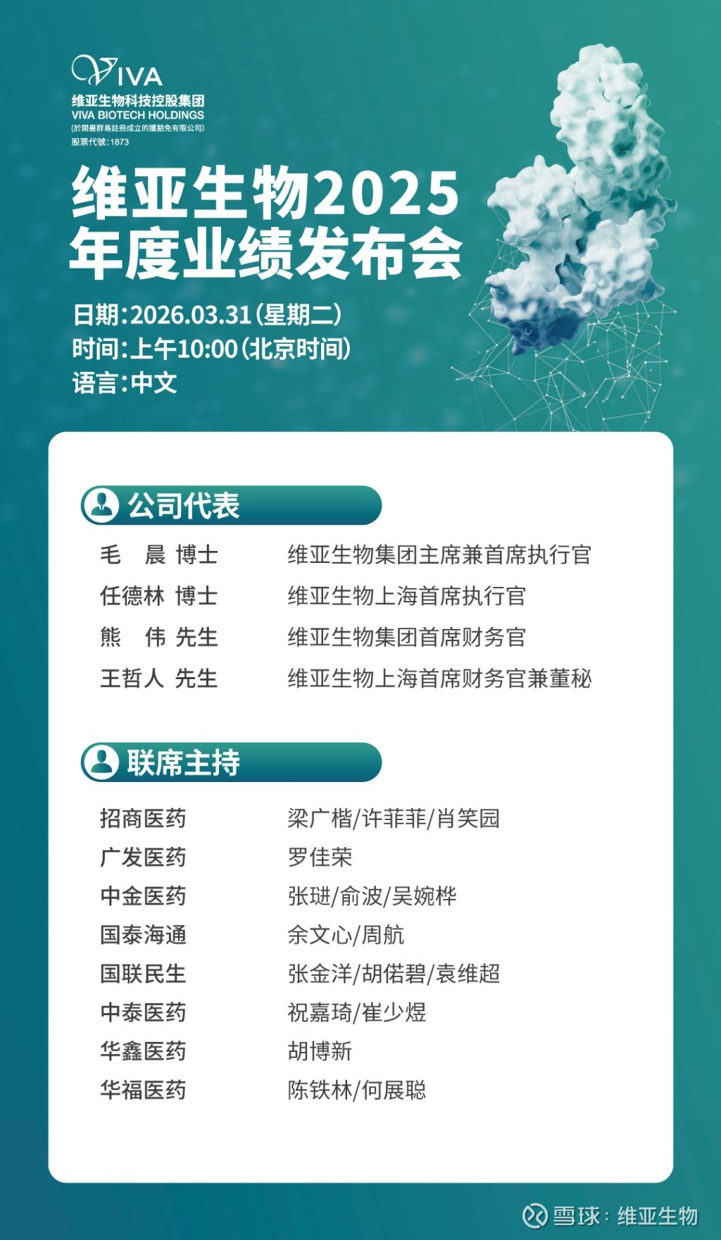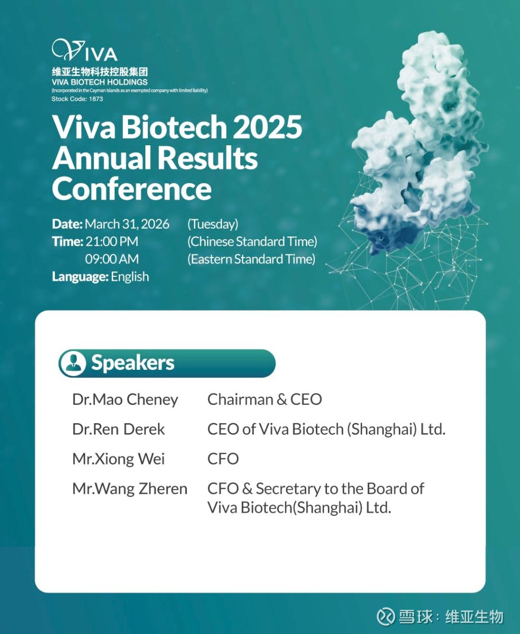 We sincerely invite you to attend the Viva Biotech 2025 Annual Results Conference on March 31.