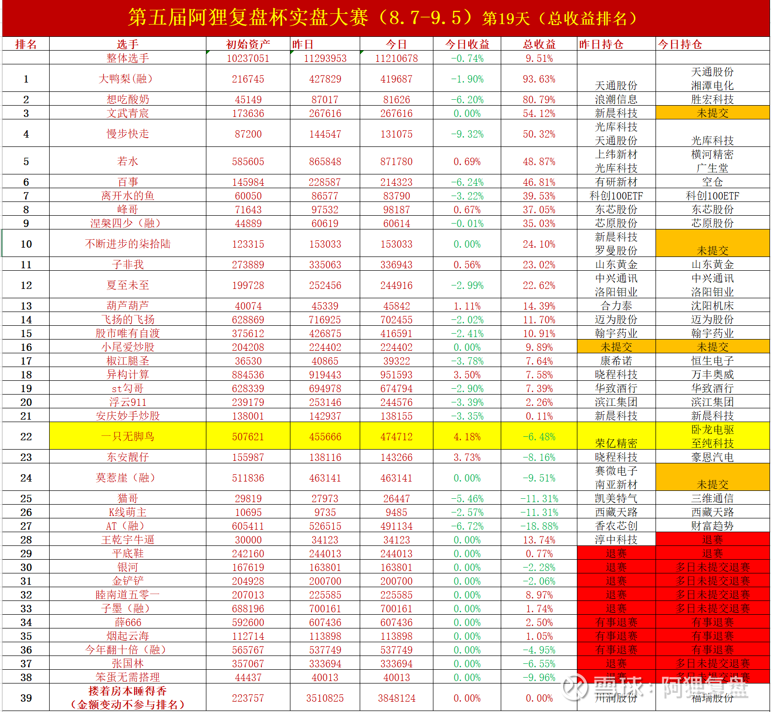 下面是第五届阿狸复盘杯今日赛况:(黄色为今日收益率第一)