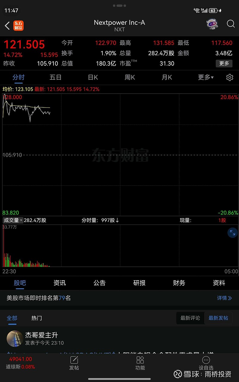 近3个月NXT股价单日涨超5%的交易日中,意华股份次日开盘60%概率高开,平均高开幅度0.8%-1.2%,若叠加光伏板块走强,高开幅度可达1.5%+,但联动持续性需看量能承接。$钧达股份(SZ002865)$ $东方日升(SZ300118)$