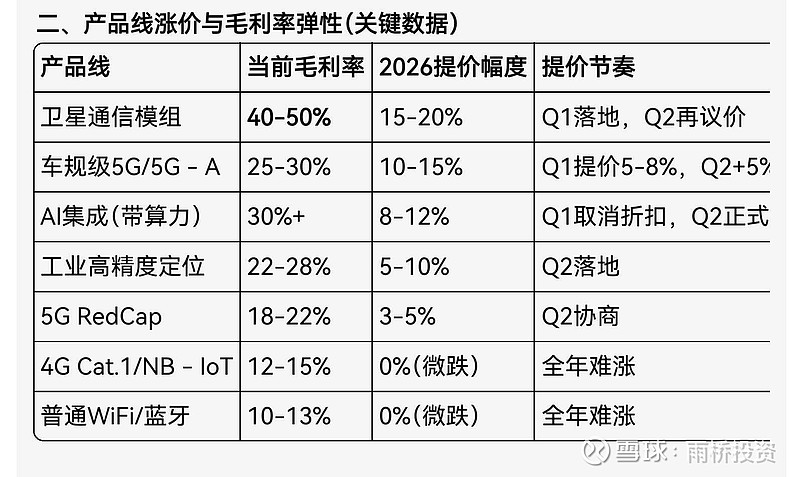 已涨(涨幅约5%-20%):车规级5G/5G - A、卫星通信、AI集成(带算力)、工业级高精度定位模组,头部厂商已提价或取消折扣