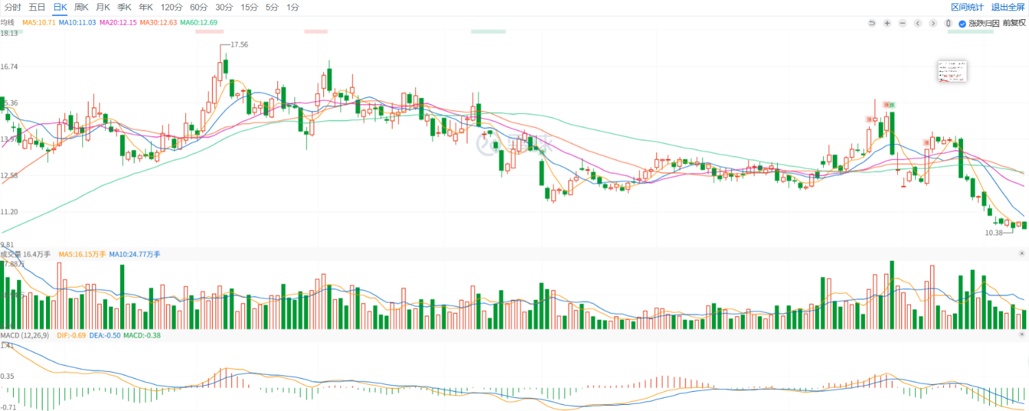 未来一段时间,很难再突破至11.00,但继续下跌至9.00左右概率很大,因此不要放过任何减仓的机会。分批减仓,是对抗人性最稳妥的方式。千万不要幻想快速涨回之前的价位(每个半年以上几乎不可能)。