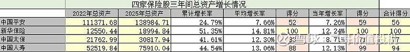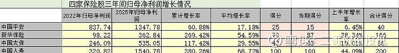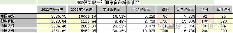 2025年新华保险净利增长38.34%,三年平均增长54.59%,均排第二,得9分。