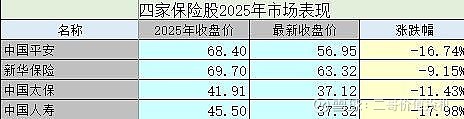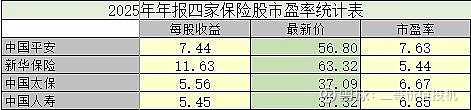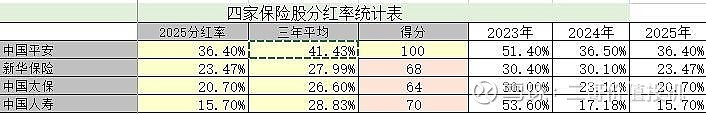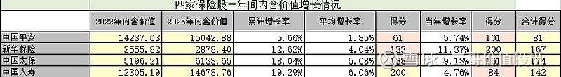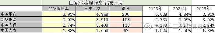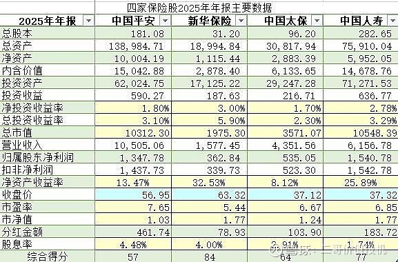 附:四家保险股2025年主要数据及投资打分