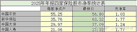 四家保险公司市净值对比: