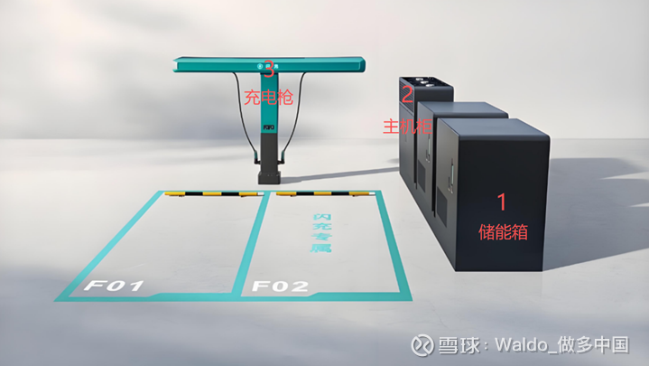 未来畅想,掌握电池、储能、闪充桩能力,可以在世界地方有空地的地方即便没有电网的地方建设储充一体加电站,比如在美国中西部地区的沙漠里,在北非的沙漠里,高速公路两旁只要铺设足球场大小的光伏板,一个储能柜,一个主机柜(PCS),几个充电枪,就能靠着太阳能为过路的汽车充电。如下图: