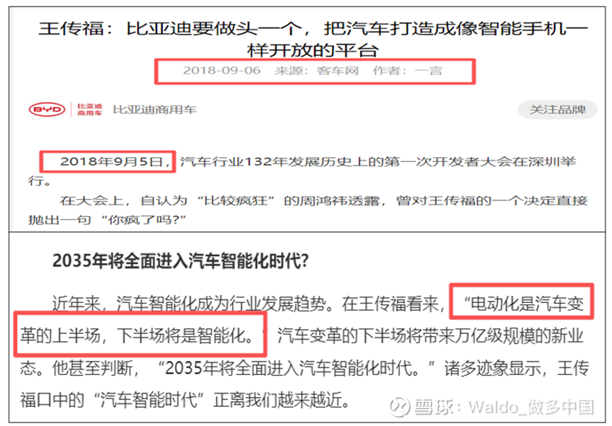 2018年9月,比亚迪召开汽车行业132年以来第一个开发者大会,传福哥是在那个时候作为人类第一个系统性阐述智能化电车未来发展路径的人,智能化电车上半场是电动化,下半场是智能化。