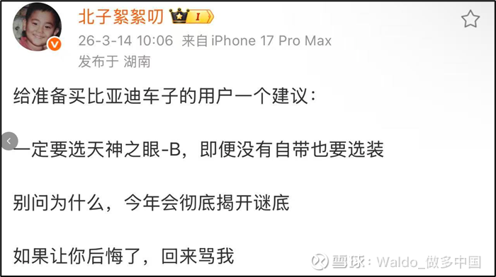 这个是比亚迪有名的KOL,他的信息源非常准确。